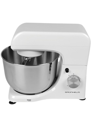Опис Кухонний комбайн GKM0020 Grunhelm Кухонний комбайн GKM0020 Grunhelm стане незамінним помічником на Вашій кухні. Модель обладнана планетарним міксером, м'ясорубкою і скляним блендером. Машина оснащена функціями замісу тіста, подрібнення, збивання, перемішування, подрібнення, приготування напоїв і фаршу. Знімна чаша об'ємом 5 л виготовлена з нержавіючої сталі. Для зручного використання передбачено 6 швидкостей, які регулюються за допомогою ручки.