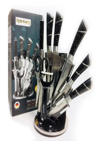 Набір ножів з підставкою, що крутиться - корисний предмет для вашої кухні. Він включає всі необхідні види ножів, ножиці, овочечистку і мусат.