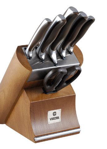 Підставка для ножів дерев'яна магнітна Vinzer (50134) Розмір підставки: 27x22.5 см Розмір упаковки: 27,5х11,8х24 см Колір: Дерево, сталь Особливості: Каучукове дерево, нержавіюча сталь FERRINOX 18/10 Дерев'яна база — безпечна та зручна у використанні: ваші ножі завжди на видному місці та довго зберігають різальну крайку. Магніт утримує ножі міцно та надійно, даючи змогу комфортно організувати робочий простір. Виготовлена з каучукового дерева, одного з найбільш екологічно чистих порід дерева, і нержавіючої сталі, база чудово впишеться в будь-який кухонний інтер'єр. Не вбирає ні запахи, ні вологу. Базу рекомендується зберігати в сухому місці, для мийки використовувати вологу м'яку губку. Підставка для ножів Vinzer (50134) виготовлена з екологічно чистого каучукового дерева та нержавіючої сталі FERRINOX 18/10. Обладнана потужним вбудованим магнітом, який надійно утримує ножі на поверхні, забезпечуючи швидкий доступ і безпечне зберігання. Матеріали стійкі до вологи та не вбирають запахи, що робить виріб практичним і довговічним у повсякденному використанні. Дерев'яна магнітна підставка для ножів Vinzer (50134) — стиль, практичність і лад на вашій кухні Шукаєте зручне та сучасне рішення для зберігання ножів? Магнітна колода для ножів Vinzer (50134) з каучукового дерева — ідеальний вибір для тих, хто цінує комфорт, безпеку та естетику на кухні. Виготовлена з натурального каучукового дерева і нержавіючої сталі FERRINOX 18/10, колода вирізняється міцністю, довговічністю й екологічністю. Потужний вбудований магніт надійно утримує ножі, даючи змогу зручно розмістити їх на видноті та завжди мати під рукою. Таке зберігання продовжує термін експлуатації лез, адже вони не стикаються один з одним, як у класичних підставках. Переваги дерев'яної магнітної підставки Vinzer: Виготовлена з екологічно чистих і безпечних матеріалів Потужний магніт надійно фіксує ножі на поверхні Зручний доступ до інструментів під час готування Сучасний лаконічний дизайн, що підходить під будь-який кухонний інтер'єр Не вбирає запахи та вологу Простота в догляді — досить протерти вологою м'якою губкою Компактні розміри паковання (27,5×11,8×24 см) роблять підставку зручною в транспортуванні та зберіганні. Купити дерев'яну магнітну колоду для ножів Vinzer — це вкладення ладу, безпеки та естетики вашої кухні. Дуже добре підходить як для домашнього, так і для професійного використання.