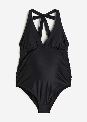 Купальник MAMA. Купальник з відкритою спиною, повністю на підкладці, з обрізаним лазером, фігурними краями. Трикутні чашки з вкладками, зав'язками зверху і збірками з боків для комфортної посадки на животі. Купальник частково виготовлений із переробленого поліаміду.