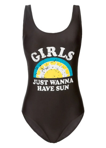 Спортивні купальники також будуть незамінні для відпочинку на водних атракціонах або пляжного спорту. Чорний колір робить фігуру жінки стрункішою, вигідно підкреслює силует, ефектно виглядає при засмазі. Жовте оздоблення з написами по бокам купальника, візуально корегує лінію талії, робить її стрункішою та більш підтягнутою, візуально збільшує груди