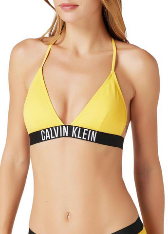 Топ для плавання Calvin Klein із логотипом. Стильний та зручний купальний топ. Гладкий матеріал. Зав'язки на шиї. Трикутна форма зі знімними чашечками. Еластична резинка на талії з брендом логотип. Позаду застібка. Відмінна якість.