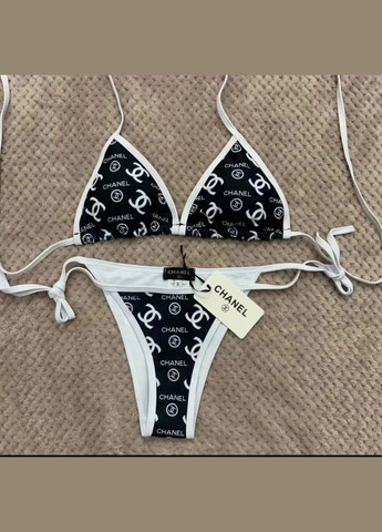Жіночий роздільний купальник CHANEL, втілює в собі елегантність і розкіш бренду з яскравим і стильним дизайном. Такий купальник надає образу витонченості та елегантності. Еластичний та якісний матеріал, підкреслює фігуру, а регульовані зав'язки на топі та плавках для ідеальної посадки та комфорту. Колір: чорно-білий Матеріал: високоякісна еластична тканина (85% нейлон, 15% лайкра) Розмір: S, М, L