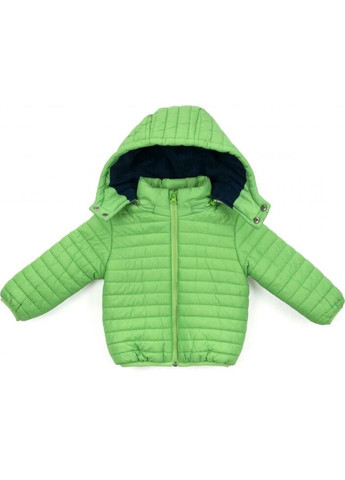 Затишна курточка прямого силуету з плащівки, приємного салатового кольору з коміром-стійкою. Застібається на капронову блискавку, зверху є захист для підборіддя. Верх куртки, рукава і каптур вистібані разом із шаром синтепону, тому утеплювач при пранні не збиватиметься в кому. Капюшон та основа додатково утеплені флісовою підкладкою темно-синього кольору. Рукави на синтепоні без флісу (на підкладці з плащової тканини). Знімний капюшон - на блискавці, спереду застібається на дві кнопки. Низ курточки та рукавів зібраний на щільну гумку.