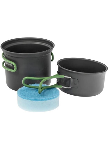 Набір посуду Rockland Travel Pro створений для мандрівників, котрі полюбляють подорожувати з мінімумом спорядження, адже розмір набору в складеному вигляді 155х113 мм, а вага 215 г. Компактний та багатофункціональний посуд укомплектований транспортною сумкою, двосторонньою губкою та двома каструлями - 0,75 л і 0,3 л (верхня каструля може слугувати кришкою). Каструлі мають спеціальні складані ручки з силіконовою ізоляцією. Набір легко складається, завдяки компактному дизайну, всередину можна помістити газовий пальник 230 г, що робить набір Travel Pro ще привабливішим для туристів, що полюбляють подорожувати наодинці. Матеріал посуду анодований алюміній, який надає швидкий та рівномірний нагрів на газовому обладнанні або з використанням газового пальника, також призначений для використання на відкритому вогні або вугіллі.