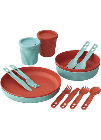Sea To Summit Passage Dinnerware Set є легким, міцним і компактним набором із чотирнадцяти предметів, який містить усе необхідне для приймання їжі двома персонами в польових умовах, далеко від цивілізації. До набору входить: миска (2 шт.) на 945 мл, миска (2 шт.) - 1020 мл, чашка (2 шт.) - 475 мл, ложка - 2 шт., виделка - 2 шт., ловилка (комбінація ложки і виделки) - 2 шт. і ніж - 2 шт. Чашка і миска мають стінки зі спеціальною технологією - Cool Grip, ребриста поверхня дає змогу утримувати посудину з гарячим супом або напоєм, не боячись обпектися. Особлива форма бортиків мінімізує ризик розливання місткості. Завдяки своїй конструкції, деталі набору укладаються всередину каструль Frontier, що дає змогу економити місце під час пакування. Ручки столових приборів можна з'єднати для зручності транспортування або зібрати в протилежних напрямках, щоб створити довгу ручку, завдяки чому можна дістати дна пакета. Всі предмети набору виготовлені з харчового склопластику високої якості, посиленого скловолокном, цей набір приладів легко миється, можна використовувати в мікрохвильовій печі та посудомийній машині. Набір посуду Sea To Summit Passage Dinnerware Set сподобається мандрівникам, туристам і всім любителям активного виду відпочинку на природі. Розміри: тарілка 22.4x22.4x3.3 см, велика миска 17.7x17.7x5 см, кухоль 9.3x9.3x12.7 см, ніж - 15.8x2.4x06 см, виделка 15.8x2.9x1 см, ложка 15.8x4x1.2 см, ложка-вилка 15.8x4x1.1 см.