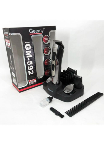 Акумуляторна машинка для стрижки Gemei Gm-592, 10 в 1 (набір для стрижки волосся та бороди) Універсальний, надійний та високотехнологічний триммер машинка Gemei 592, дозволить вам з комфортом робити догляд за волосяним покривом на Вашому обличчі. Простота догляду за триммером забезпечує максимальний рівень гігієнічності, а ергономічність та невеликі габарити приладу дає можливість брати його навіть у поїздки, не побоюючись через відсутність електрики. Тример зробить все для того, щоб Ви змогли підкреслити свою оригінальність Технічні характеристики: Ергономічний дизайн; Вбудований акумулятор; Час заряджання батареї: до 5 годин; Вхід для адаптера: AC 220V-240V Комплектація: Чотири насадки для стрижки (3 мм, 6 мм, 9 мм, 12 мм); Насадка триммер для носа та вух; Насадка тримера для бороди; Насадка бритва для бороди; Кабель заряджання; Щітка для очищення; Підставка; Гребінець; Масло; Коробка