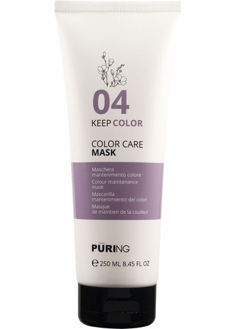 PURING 04 KEEPCOLOR Color Care Mask – це професійна маска, розроблена для догляду за фарбованим та меліруваним волоссям. Формула, збагачена олією насіння льону та вітаміном Е, проникає глибоко у структуру волосся, живлячи його та зберігаючи яскравість кольору. Маска інтенсивно зволожує, запобігає сухості, ламкості та втраті блиску, робить волосся м’яким, гладким та сяючим. Основні переваги: Допомагає зберегти яскравість кольору волосся. Інтенсивно зволожує та живить. Відновлює пошкоджену структуру волосся. Полегшує розчісування та укладання. Захищає від сухості, ламкості та тьмяності. Має pH 4.5-5.0 для збереження стійкості кольору. Активні компоненти: Олія насіння льону – насичує волосся поживними речовинами, додає йому блиску та еластичності. Вітамін Е – антиоксидант, який захищає волосся від впливу зовнішніх факторів та зберігає його колір. Аромат: Легкий, з нотками льону. Для кого цей продукт: Підходить для власників фарбованого та меліруваного волосся, які хочуть зберегти його колір яскравим і насиченим. Результат: Волосся залишається глибоко зволоженим, м'яким, гладким і сяючим, а його колір – стійким та насиченим.
