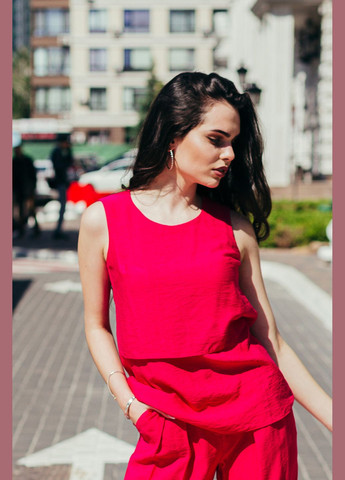 Жіноча майка з прямим кроєм, через голову Стильна та універсальна жіноча майка з прямим кроєм – ідеальне рішення для створення різних образів: від ділового до романтичного. Завдяки лаконічному дизайну та комфортній посадці, вона чудово поєднується з брюками, спідницями чи шортами, додаючи легкості та елегантності будь-якому стилю. Відсутність рукавів робить її незамінною у спекотні дні, а прямий крій забезпечує свободу рухів і витончений силует. Особливості: Прямий крій – класичний силует, який пасує будь-якому типу фігури. Зручна посадка через голову – швидке та легке одягання. Без рукавів – ідеальний варіант для теплої пори року. Багатофункціональність – підходить для офісних, романтичних та повсякденних образів. Рекомендації по стилізації: Для офісного стилю поєднуйте майку з класичними брюками або спідницею-олівець і піджаком. Для романтичного образу носіть її зі спідницею з легких тканин та босоніжками. Для casual-луку комбінуйте з джинсами або шортами та кедами. Ця жіноча майка стане базовим елементом вашого гардероба, дозволяючи створювати стильні та витончені образи на будь-який випадок.