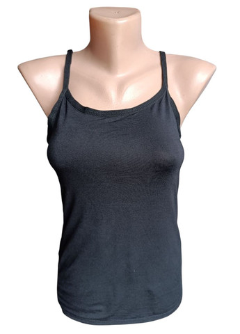 Жіноча майка-топ з регульованими тонкими не з"ємними брителями,з не з"ємними паралоновими вставками для грудей,з гумкою,що підтримує під чашкою.Висока еластичність(спандекс),напівприлегла.Гарний варіант для дівчат та жінок ,які не полюбляють носити бюстгальтер(який іноді викликає дискомфорт).Підійде для щоденного носіння,як взимку під одяг,так і влітку,під брюки,джинси та спідницю.