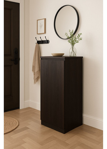 Тумба з дверцятами та внутрішньою полицею. Підходить для спальні, дитячої чи офісу. Компактна, поєднується з іншими меблями або використовується окремо. Основні характеристики: Країна виробник: Україна Гарантія: 12 місяців Стан: Новий Матеріали: Корпус: ламінований ДСП Фасади: ламінована ДСП Габарити: Ширина: 402 мм Глибина: 402 мм Висота: 544 мм Доступний в кольорах: Білий, Дуб Сонома, Дуб Крафт, Сірий Темний, Сірий світлий, Венге магія (під замовлення) Конструкція передбачає змінний напрямок відкривання фасаду (лівий/правий). Декори виробів на екрані можуть незначно відрізнятися від реальних через індивідуальні налаштування монітора та інші фактори. Доставка здійснюється по всій території України. Виріб поставляється в розібраному вигляді, в комплекті з усією необхідною фурнітурою та детальною покроковою інструкцією зі складання.