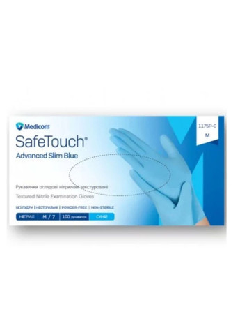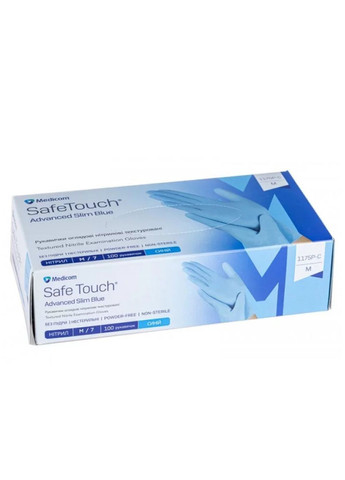 Нітрилові рукавички (100шт/уп - 50 пар) Медиком SafeTouch® Vitals Slim Blue без пудри