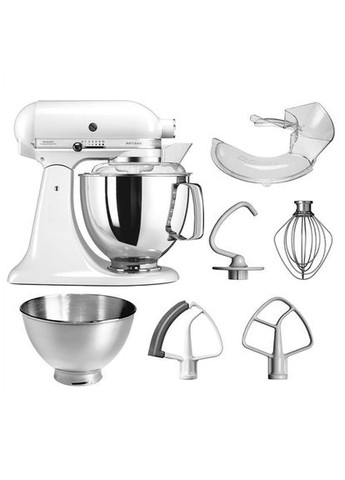 Можливостей класичного планетарного міксера далеко не завжди вистачає для вирішення найпростіших завдань. Тому з покупкою планетарного міксера KitchenAid Artisan 4,8 л 5KSM175PSEHY ви отримаєте більш універсальний інструмент. Розширений функціонал та технічні рішення вивели цей прилад на зовсім новий рівень, у нішу, що приблизно відповідає кухонним машинам. І це у поєднанні з чудовою надійністю (багато в чому завдяки ручному складанню кожного виробу) та продуманому, дуже гарному дизайну. Також цей планетарний міксер надзвичайно простий та зручний у повсякденній експлуатації. Швидке та ефективне змішування з KitchenAid Artisan 4,8 л. Головна особливість та «козирна карта» всієї лінійки машин серії KitchenAid полягає в системі планетарного змішування. Її суть проста – насадки закріплюються в пазах і працюють як у звичайного планетарного міксера. Але сам блок із насадками переміщається всередині чаші для змішування. Це дозволяє не пропускати ділянки суміші, ретельно обробляючи її. Те саме робить кухар, коли перемішує суміш вручну, тільки набагато повільніше. Наприклад, на приготування повітряного крему з яєчних білків у вас йдуть лічені секунди. Особливості комплектації Прилад пристосований для збивання та перемішування, а також може виконувати набагато більш просунуті дії. Купуючи планетарний міксер KitchenAid Artisan 4,8 л 5KSM175PSEHY, ви отримуєте стандартний набір насадок: - широкий віночок для збивання; - гнучку лопатку для перемішування; - гак-тістоміс. Плюс 2 металеві чаші на 4,8 та 3 л. та прозорий захисний обід до них. Навіть цього цілком вистачить у більшості випадків. Для покупки опціонально доступні насадка-м'ясорубка та насадка для пасти, що представляють, по суті, самостійні прилади, що працюють від двигуна планетарного міксера.