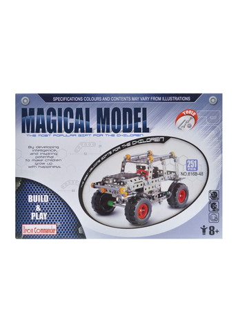 Металевий конструктор - це не просто іграшка, а захоплюючий спосіб познайомити дитину зі світом механіки та конструювання. Набір включає безліч дрібних металевих деталей, які легко поєднуються між собою, дозволяючи створювати різноманітні моделі, від простих до досить складних. Складання моделей, наприклад, машинки, вимагає зосередженості, терпіння та уважності до деталей. Характеристики: ● Тип товару: конструктор металевий ● Вікова група: від 8 років ● Кількість деталей: 190 ● Матеріал деталей: метал ● Стать: унісекс ● Форма складного конструктора: позашляховик ● Особливості: розвиває моторику рук та мислення ● Розмір машинки: 12.5х9.5х7.5 см Комплектація: ● Конструктор ● Викрутка ● Ключ ● Деталі - 190шт ● Інструкція ● Упаковка