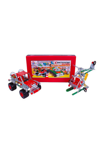 Конструктор металевий Мегауніверсал від виробника ТехноК Конструктор «Мегауніверсал ТехноК» (381 дет. / 30 моделей) – це чудовий подарунок для маленького техніка, якого захоплюють різні пристрої та механізми. Даний набір викличе справжній захват у вашого малюка, адже він складається з 381 деталі – в тому числі кольорових металевих пластин, гвинтів, болтів та гайок та оригінальних деталей з пластмаси. Використовуючи всі ці елементи, безмежну дитячу фантазію та справжню викрутку, ваш маленький механік зможе самостійно створити одну з 30-ти запропонованих моделей або ж створити свою власну. Даний набір пакується у велику коробку, в якій передбачено дві пластмасові вставки, що дозволяють зручно зберігати конструктор в розібраному вигляді. Покрокова інструкція допоможе зібрати як прості моделі, такі як – стілець, лавка чи тачки, так і більш складні – мотоцикл, грейдер, позашляховик, винищувач, гелікоптер, кран, будівельний кран чи трактор. Покажіть своїй дитині чудеса механіки, дозволивши йому "оживити" цілу лінійку моделей конструктора «Мегауніверсал ТехноК». Відправимо по всій Україні оптом та в роздріб