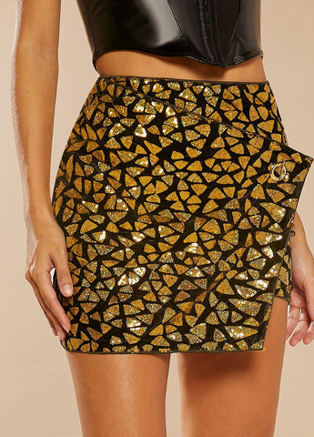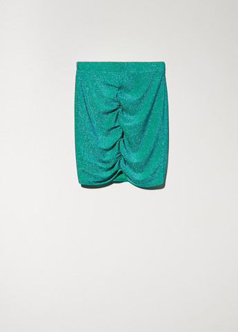 Спідниця-міні з еластичного матеріалу, зі складанням спереду. Пояс на резинці. Довжина виробу на розмір XS: 39 см, окружність талії: 60 см, обхват стегон: 70 см; на розмір S: 40 см, окружність талії: 62 см, обхват стегон: 72 см; на розмір M: 40 см, окружність талії: 68 см, обхват стегон: 74 см; на розмір XL: 42 см, окружність талії: 76 см, обхват стегон: 84 см; на розмір XXL: 42 см, окружність талії: 78 см, обхват стегон: 88 см.