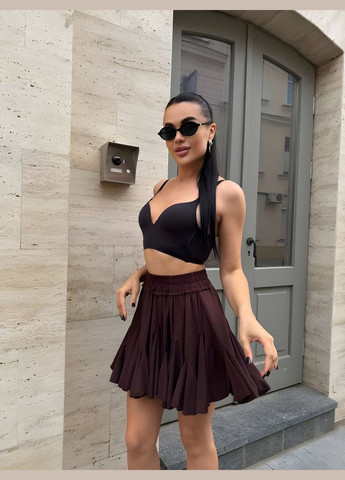 Колір Темно-коричневий / Висота посадки Висока талія / Довжина виробу Міні / Матеріал Креп