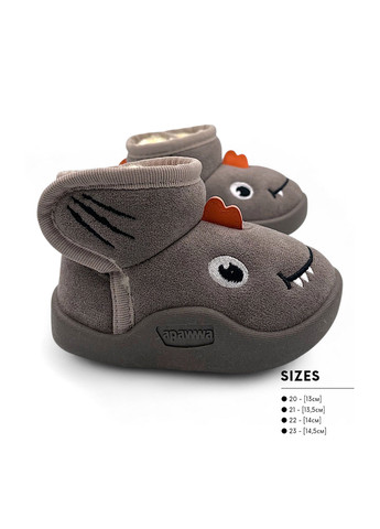 Дитячі зимові черевики Apawwa для хлопчика та дівчинки. Модель виготовлена із м’якої замші, що забезпечує комфорт і приємне відчуття під час носіння. Усередині — тепле штучне хутро, яке надійно зберігає тепло навіть у морозну погоду. Устілка також утеплена хутром для додаткового затишку. Зручна форма та стильний сірий колір підходять як хлопчикам, так і дівчаткам. Ідеальний варіант для зимових прогулянок. Розмірна сітка: 20р. устілка 13,0 см 21р. устілка 13,5 см 22р. устілка 14,0 см 23р. устілка 14,5 см