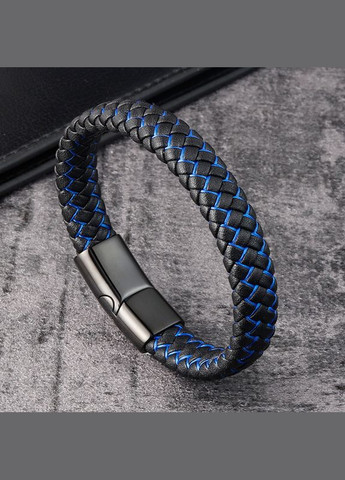 Чоловічі шкіряні браслети — це стиль, якість, брутальність, елегантність і доступна ціна. Цей браслет заслуговує на особливу увагу. Дуже модний і крутий дизайн, плетений шкіряний ремінець із додаванням синього кольору додати незвичайності Вашому образу. Застібка механічна, на додаток якої всередині вставлений магніт, що подвоює її надійність. Чудово підійде як під костюм, так і під джинси. Розмір: 21 см
