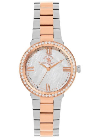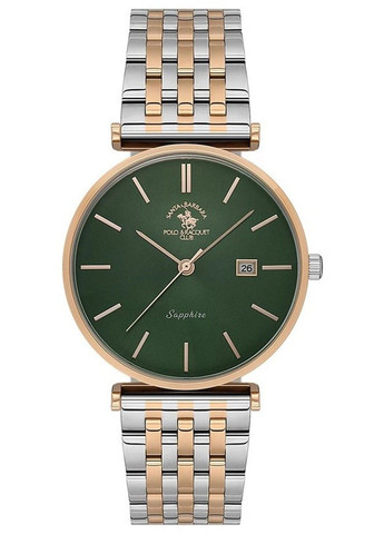 Кварцовий наручний чоловічий годинник Santa Barbara Polo & Racquet Club SB.1.10550-1 - ідеальний годинник для тих, хто хоче ефектно підкреслити свій неповторний стиль. Калібр механізму Miyota JP25. Прямокутний корпус з нержавіючої сталі з матовою та полірованою обробкою. 12-ти та 24-х годинний формат часу, другий часовий пояс та день тижня винесені на окремі циферблати. Віконце дати знаходиться між відмітками 4 та 5 годин. Дворівневий циферблат виконаний за технологією Sunray (сонячні промені) із фактурною вставкою, прикрашений фірмовим логотипом. Мітки у вигляді арабських цифр. Рифлена заводна головка. Зручний шкіряний ремінець з застібкою, що розкладається. Водонепроникність – 50 м.