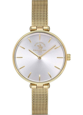 Стильний жіночий годинник від Santa Barbara Polo & Racquet Club SB.1.10500-1 з перламутровим циферблатом, оздоблений кристалами. На додаткових маленьких циферблатах відображаються дата та день тижня. Витончені циферблати та непомітні кришталеві акценти додають додаткового блиску, підкреслюючи жіночність цієї моделі. Круглий корпус діаметром 36 мм, виготовлений з срібної нержавіючої сталі, пропонує довговічність та вишуканий вигляд. Точність руху забезпечується японським кварцовим механізмом. Скло – мінеральне, стійке до виникнення подряпин. Браслет виготовлений із нержавіючої сталі. Водонепроникність – 50 м.