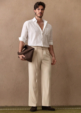 Чоловічі штани Manfinity Homme, зелені. Ці штани прямого крою виконані у класичному стилі. Вони застібаються на блискавку. Штани мають кишені та середню лінію талії. Тканина не тягнеться. Підходять як ділових, так повсякденних образів. Рекомендації щодо догляду: машинне прання чи хімчистка.