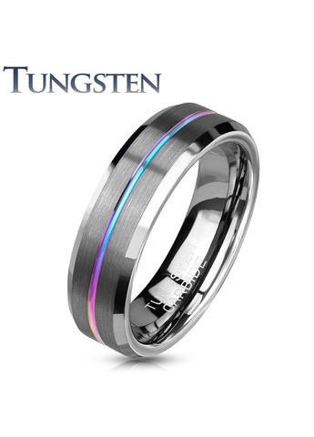 Кільце без покриття, з матовою смужкою виконано з карбіду вольфраму. Прикраси з карбіду вольфраму дуже довговічні. Їх не можна подряпати чи погнути. Вони підходять для людей із чутливою шкірою, оскільки не викликають алергії. Вольфрамові вироби за міцністю не можна порівняти із золотими, при цьому дуже тішать своєю демократичною вартістю. Ширина: 6 мм Вольфрамове кільце - неабияка прикраса. Через виняткову твердість карбід вольфраму, подібно до алмазу серед мінералів, стоїть на чолі всіх існуючих металевих сплавів. Подряпати його можна, лише озброївшись алмазним напилком. Унікальні факти про кільця з карбіду вольфраму: Це найтвердіші кільця у світі. - Не деформуються. - Не дряпаються. - стійко переносять більшість видів механічних впливів. Більше практичного матеріалу для прикрас ще не придумали; Вольфрамові кільця стійкі до окислення, отже — не темніють; Вони безпечні для здоров'я та не викликають алергічних реакцій; Моделі із глянсовою поверхнею зберігають бездоганний блиск десятиліттями; Кільця з вольфраму практично вічні прикраси. Тому багато пар довіряють їм роль весільних прикрас.