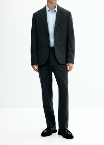 Однобортний піджак з м'якої вовни. Вузький крій, лацкани із зазубринами, нагрудна кишеня, кишені з клапанами внизу, внутрішні кишені. Застібка на два гудзики, декоративні гудзики внизу рукавів, ззаду розріз. З підкладкою. Для розміру 58: напівобхват грудей – 60 см, довжина – 76 см. Можливе пошкодження бірки.