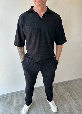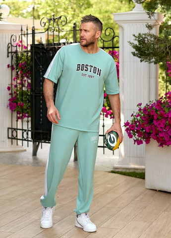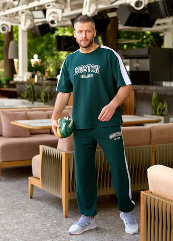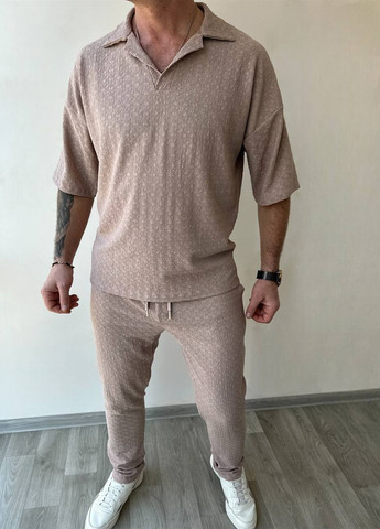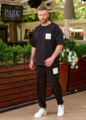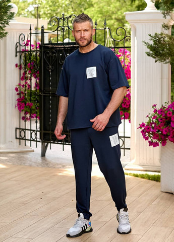 Стильний, комфортний костюм із бавовни. Футболка вільного крою з круглим вирізом та принтом спереду, штани на резинці зі шнурком та бічними кишенями.