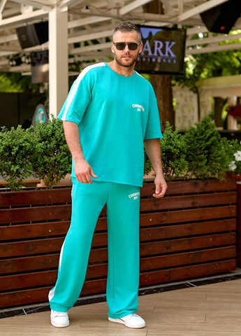 На розмір 54-56: довжина футболки 73 см, обхват грудей 126 см, довжина штанів 105 см, обхват талії 84-94 см, обхват стегон 122 см.