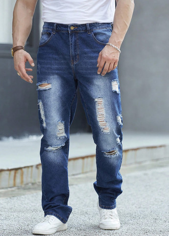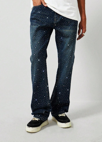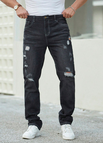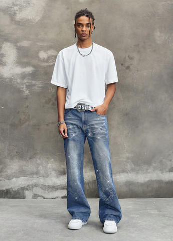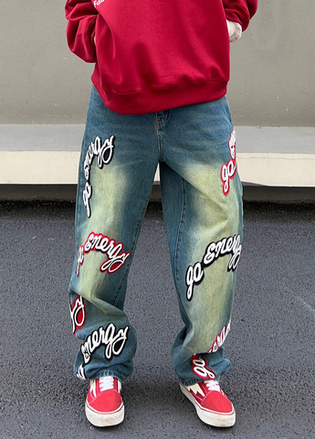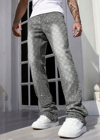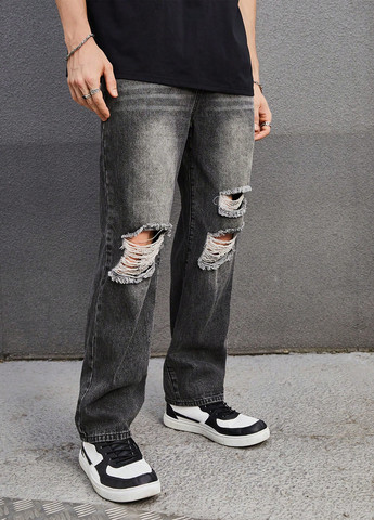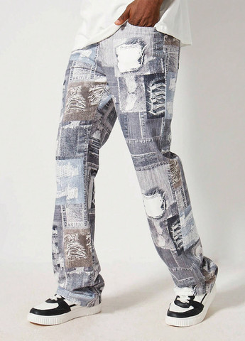 Джинси ROMWE MEN Street Life сірого кольору. З принтом по всій поверхні та прямим кроєм. Застібка-блискавка, гудзики та кишені. Середня посадка та подовжена довжина. Крій стандартний. Тільки ручне прання.