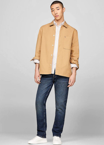 Чоловічі джинси Tommy Hilfiger. Класична модель з п'ятьма кишенями, із щільної джинсової тканини. Застібка на гудзик та блискавку. Верх однієї з кишень обшитий у фірмових кольорах бренду. Петелька для гудзика обшита ниткою контрастного кольору. На одній із задніх кишень вишитий невеликий логотип бренду. Відмінна якість.
