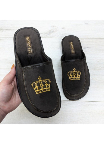 Чоловічі коричневі велюрові закриті кімнатні капці Белста з короною. Виготовлені із міцних матеріалів, що відповідають усім необхідним ГОСТам та отримали сертифікати якості.