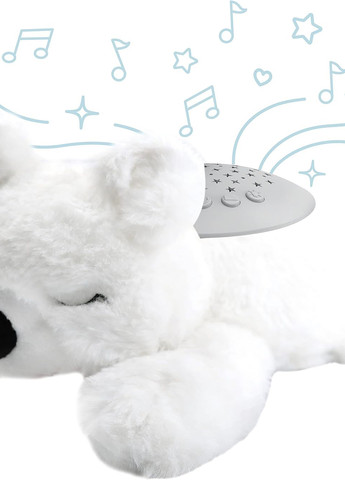 Спокійне тренування сну для малюка: допоможіть своєму малюкові швидше заснути, притулившись до цієї чарівної плюшевої пустушки у вигляді тварини, запрограмованої на 10 колискових і 3 заспокійливих звуків, включаючи білий шум, серцебиття та щебетання птахів. Просто відрегулюйте звук для комфорту вашого малюка за допомогою 5 рівнів гучності. Заспокійливе світлове шоу: заспокоюйте та розважте свого малюка, поки він засинає, за допомогою розслаблюючого зіркового шоу, яке яскраво відображається на будь-якій стіні чи стелі у м'яких червоних, синіх та зелених тонах. 30-хвилинний таймер автоматичного вимкнення: вам не потрібно повертатися до дитячої кімнати, щоб вимкнути пустушку, коли ваша дитина засне. Вона автоматично відключає звук і світло через 30 хвилин, допомагаючи заощаджувати заряд батарейок (живлення здійснюється від 3 батарейок типу ААА, в комплект не входять). Незалежні звук та світло: Бажаєте заспокійливу музику без світлового ефекту чи зіркове шоу без музики? Незалежне керування дозволяє легко керувати кожним з них окремо або обома одночасно. Розмір: 25х12х17 см.