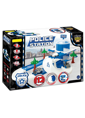 Іграшковий набір "Поліція" Play Tracks City Набір Play Tracks City "Поліція" - це тематичний набір з серії Play Tracks City, який потішить всіх дітей, що мріють стати поліцейськими. Кольорова, легка і проста у складанні конструкція дає змогу компонувати кількарівневі траси загальною довжиною 3,8 м, а двоповерхова станція і 3 машинки з серії Kid Cars (поліцейська машина, автофургон і джип) забезпечать вашій дитині багато радості. До складу комплекту входять також: декорації, наклейки і стовпи для побудови віадука. Набір дозволяє придумувати багато сценаріїв ігор, розвиває уяву дітей і спонукає до креативності. Ігри набором покращують руховий розвиток наймолодших, особливо дрібної моторики, їх мануальні здібності, точність рухів і зорово-моторну координацію, навчають логічного мислення і просторової орієнтації. Під час гри дитина знайомиться з принципами дорожнього руху, а також вчиться як безпечно переходити дорогу. Всі елементи виготовлені з високоякісного безпечного і міцного матеріалу, завдяки чому всі частини траси зберігатимуть вигляд і колір протягом багатьох років. Набір упакований в гарну коробку, ідеальну на подарунок. Play Tracks City набір "Поліція": дорога довжиною 3,8 м містить двоповерхову станцію, 3 машинки серії Kid Cars (поліцейська машина, автофургон і джип), декорації і комплект наклейок виготовлений з високоякісного безпечного і міцного матеріалу упакований в гарну коробку, ідеальну на подарунок для дітей від 1 року розмір у складеному вигляді 103х57 см Відправимо по всій Україні оптом та в роздріб