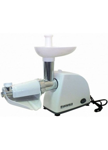 М'ясорубка Grunhelm AMG180SS - недорога модель із широкими функціональними можливостями. Побутова техніка від відомого виробника знайдеться місце на кухні. Пристрій може за короткий час обробити велику кількість м'яса. Поміщати шматочки продукту в горловину - єдине ваше завдання. При цьому попередньо варто видалити з продукту великі та жорсткі кістки, а ось з жилами та хрящами мотор упорається без проблем. Знаходьте цікаві рецепти, вигадуйте власні, радьтеся з близькими людьми – радуйте лише смачними м'ясними делікатесами. Дизайн та матеріали Grunhelm AMG180SS Вибираючи кухонну техніку, варто керуватися не лише її технічними характеристиками, а й дизайном. Розумна ціна м'ясорубки Grunhelm AMG180SS не завадила компанії приділити увагу зовнішньому вигляду. Представлена модель – компактна та стильна. Вона легко розміститься навіть на маленькій кухні, а завдяки грамотно продуманим габаритним розмірам. Чорний колір із сріблястими елементами доповнить будь-який інтер'єр. Прогумовані ніжки, що не ковзають, є гарантією стійкості машини на робочій поверхні. Матеріал корпусу - вдала комбінація металу та пластику. Це унеможливлює механічні пошкодження, а також є запорукою тривалої служби пристрою. Крім того, всі деталі виконані з якісних матеріалів, які негативно не впливають на їжу. А це означає, що безпека використання м'ясорубки Grunhelm AMG180SS знаходиться на найвищому рівні. Особливості побутової техніки М'ясорубка Grunhelm AMG180SS - багатофункціональний кухонний помічник, який значно прискорить процес обробки м'яса та овочів. З таким агрегатом можна економити час на кулінарних справах, щоб приділити вільні хвилини сім'ї. Скільки апетитних блюд можна приготувати з м'яса? Багато! Тефтелі, зрази, м'ясні запіканки, кеббе, бургери, салати - власникам техніки під силу будь-який вишук. Електроприлад оснащений двигуном на 1500 Вт, який швидко подрібнює м'ясні шматочки. Продуктивність м'ясорубки Grunhelm AMG180SS складає 1,7 кг м'яса на хвилину. «Реверс» дає можливість уникнути повного розбору девайсу — зворотний хід миттєво позбавить шнек від м'ясних прожилок, що застрягли. Завантажувальна вирва широка, тому завантажувати їжу зручно. Кнопка увімкнення/вимкнення розташовується на бічній панелі електром'ясорубки, що робить її ергономічною. Рекомендуємо більш детально вивчити наведені нижче технічні характеристики: максимальна потужність - 1500 Вт; продуктивність - 1,7 кг/хв; матеріал корпусу - метал/пластик; матеріал лотка - пластик; кількість грат - 2; кількість барабанів - 3; габарити (ВхШхГ) - 270х210х210 мм; вага - 2,1 кг; гарантія – офіційна. Функції та насадки м'ясорубки Grunhelm AMG180SS Відмінний результат функціонування нового агрегату забезпечують базові насадки, які пропонує виробник в комплекті. Модель Grunhelm AMG180SS забезпечена: Двома різальними дисками - прилади різного діаметру (5 і 7 мм) гарантують отримання фаршу різного виду. Тертками і шатківником - агрегат з декількома знімними барабанами, які натирають овочі на тертці або шаткують. Приладом для ковбасок є конусна форма, у якої замість вершини відрізок трубки. При цьому м'ясорубку потрібно зупиняти та перев'язувати ковбаски. Це допомагає розділити безперервну сосиску на шматки. Ще одна перевага м'ясорубки Grunhelm AMG180SS - вбудований захист від навантаження. Технологія мінімізує можливість поломки приладу, щоб ви могли насолоджуватися роботою 