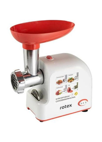 М'ясорубка Rotex RMG200-W - потужна м'ясорубка Потужність 2000 Вт з легкістю перетворить якісне м'ясо в однорідний повітряний фарш, без праці перемеле рибу, приготує домашні ковбаски і багато іншого. Завдяки високій продуктивності пристрій переробляє досить велика кількість м'яса і робить це практично безшумно. Довговічність і практичність. Багатофункціональна техніка має місткий і міцний лоток з алюмінію, в комплект входять три диска з отворами різного калібру для помелу м'яса необхідної консистенції, додаткові насадки для ковбасок та «кеббе» допоможуть істотно розширити і урізноманітнити ваш повсякденний раціон. Наявність функції реверсу дозволять легко видалити зі шнека м'ясорубки жорсткі застрягли шматки м'яса і запобігти її передчасному виходу з ладу. Яскрава і красива. Крім корисних функцій модель має стильний і яскравим дизайном, який вигідно підкреслить інтер'єр будь-якої кухні. Ергономічний продуманий корпус приладу дозволяє використовувати і зберігати його в невеликому кухонному просторі. Rotex - це українська торгова марка, що з'явилася на ринку побутової техніки в 2005 році. Під цією ТМ продається продукція різних фірм. Rotex починала свою роботу з дрібної побутової техніки (чайники, соковижималки, м'ясорубки ін.). Товари даної ТМ заявили про себе як про якісну продукцію, має доступну ціну. Зараз лінійка товарів Rotex зросла в багато разів. В асортимент ТМ увійшли і телевізори, і кухонна техніка, і кліматична техніка, і праски, і фени, і великогабаритна побутова техніка та багато іншого. Тобто, коротко кажучи, все те, що покликане полегшити домашню працю і зробити побут найбільш комфортним. Виробник може змінювати властивості, характеристики, зовнішній вигляд і комплектацію товарів без попередження.