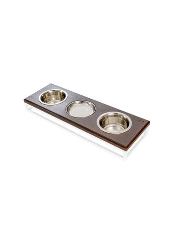 Hollky Base Bar — три миски на підставці (3 × 0,45 л) Hollky Base Bar — стильне та функціональне рішення: три миски для сухого корму, вологого корму або води. Ідеально для котів, маленьких собак або кількох улюбленців.ОсобливостіТри миски по 0,45 л, діаметр 12 см.Можливість замовити варіанти мисок (глибокі або плоскі).Захищає підлогу, проста чистка.Розміри Габарити (Д×Ш×В): 54 × 18 × 7 смПороди Британська короткошерста, Скоттіш фолд, Сфінкс, Чихуахуа та інші дрібні породи.Основні переваги Універсальність, економія місця, простота догляду.Характеристики Тип: Підставка з мисками Кількість мисок: 3 Матеріал мисок: Нержавіюча сталь Матеріал стільниці: Натуральне дерево Колір рами: чорна Колір стільниці: натуральна