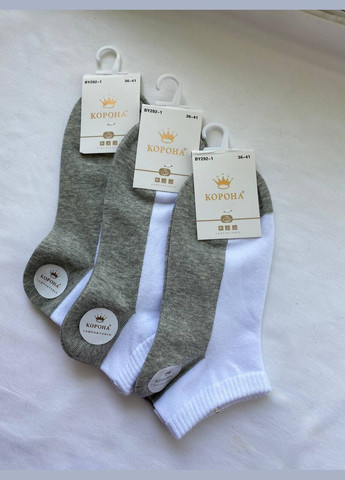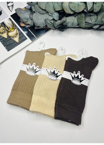 Набір з 3 пар жіночих шкарпеток від бренду Корона забезпечить вашим ногам максимальний комфорт і тепло навіть у холодну пору року. Висока якість махрового матеріалу робить ці шкарпетки незамінними для повсякденного користування.