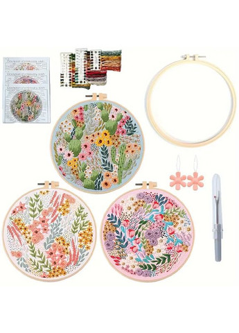 Набір для вишивання (3 шт.) — ідеальний для початківцівТворчий комплект для ручної вишивки, який підійде як дорослим, так і новачкам. У наборі є все необхідне, щоб освоїти основи вишивання і створити красиві квіткові картини своїми руками.У наборі: 3 схеми для вишивання з яскравими квітковими візерунками; Кольорові нитки (муліне); П'яльце 1 штука (20 см); Голки та аксесуари; Докладні інструкції. Особливості: Прості та зрозумілі схеми — ідеально для початківців; Вишиті картини можна використовувати як прикрасу інтер'єру або подарунок; Розвиває увагу, посидючість і творчі навички; Все необхідне увімкнене — можна відразу братися до роботи.