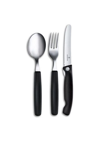Набір для пікніка Victorinox SwissClassic Table Set 3 пр 6.7192.F3 складається з ножа, вилки і ложки. Набір призначений для пікніка. Тип: для пікніка Матеріал леза: нержавіюча сталь Матеріал руків'я: поліпропілен (PP) Розмір леза: 110 мм Колір: чорний Бренд: Victorinox (Швейцарія)