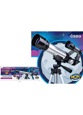 Телескоп металевий дитячий BG012 на тринозі 50см / об'єктив 59см / збільшує 120х Захоплююча іграшка телескоп на тринозі Матеріал метал+пластмаса Висота триноги 50 см Довжина об'єктива 59 см Збільшує 120х У коробці 61-18-12см