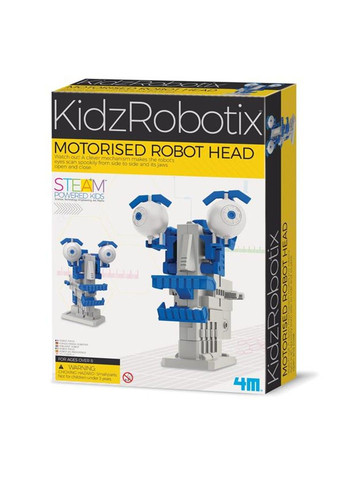 Познайомтеся з наукою робототехнікою та зберіть роботизовану голову, яка крутить очима і рухає нижньою щелепою! Із науковим набором від 4М ви дізнаєтеся про фізику і механіку, справите фурор своїм творінням. Комплект дослідника із серії KidzRobotix підійде дітям молодшої школи від 8 років. Збирання роботів дає навички конструювання, розвиває уяву, мислення, винахідливість, інтелект, допитливість, дрібну моторику. У наборі є всі необхідні деталі. Додатково знадобиться невелика хрестоподібна викрутка і дві батарейки типу ААА. Дотримуйтесь інструкції зі схемами. У вас вийде голова робота з великими очима і щелепою. Ви дізнаєтеся про електрику, редуктор, кулачкове колесо. Двигун обертає шестерні всередині корпусу. Вісь двигуна обертається дуже швидко, але шестерні зменшують швидкість обертання, так що два вали (один для очей і один для щелепи) обертаються повільніше. Кулачкове колесо впливає на кришку щелепи і рухає щелепу вгору і вниз. Ви бачите, як щелепа відкривається і закривається. Бічні кулачкові колеса переміщують повзунок уперед і назад. Повзунок штовхає виступи на кожному оці, і вони починають крутитися. Людиноподібних роботів називають андроїдами. Деякі на місці очей мають дві відеокамери. Це забезпечує їм стереоскопічний зір, як у людей. Кожне «око» бачить предмети під двома різними кутами, а компютер обєднує ці зображення в цільну картинку. Стереоскопічний зір допомагає визначати відстань до предмета. У роботах-гуманоїдах вбудовані безліч дрібних двигунів, що відповідають за щелепи, очі, брови і щоки. Разом ці механізми створюють враження, ніби робот усміхається, сміється або супиться. Ці та інші цікаві факти про роботів є в інструкції до наукового набору від 4М. У наборі Корпус – 1 шт. Кришка двигуна – 1 шт. Рамка для очей – 1 шт. Кришка батарейного відсіку – 1 шт. Основа – 1 шт. Двигун – 1 шт. Повзунок (правий) – 1 шт. Повзунок (лівий) – 1 шт. Око (праве) – 1 шт. Око (ліве) – 1 шт. Кришка для щелеп – 1 шт. Верхня щелепа – 1 шт. Нижня щелепа – 1 шт. Кришка (права) – 1 шт. Кришка (ліва) – 1 шт. Клемні кришки – 2 шт. Кулачкове колесо – 2 шт. Зіниці – 2 шт. Гвинти – 8 шт. Інструкція – 1 шт.
