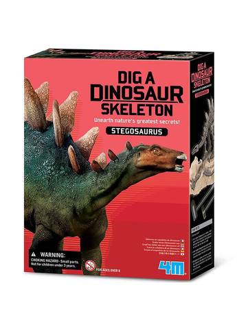 Створіть свій власний музей динозаврів. Вам належить спробувати себе в ролі вчених-палеонтологів, які займаються розкопками. Із набором для досліджень від 4М на розкопках ви знайдете скелет стегозавра, що зберігся у відмінному стані. Обладнайте робоче місце і переодягніться: на вас чекає робота з купою пилу! Використовуйте спеціальний інструмент для розкопок, щоб відшукати в гіпсовому брикеті кістки стегозавра. Ви маєте запастися терпінням і обережністю. Для очищення від пилу більш дрібних деталей використовуйте пензлик. Коли зберете всі частини скелета, протріть їх ганчірочкою і з'єднайте разом за допомогою м'якого воску. Бачите пластини у динозавра на спині? Вони захищали ящера від хижаків. Завдяки подібності цих пластин до черепиці, перші дослідники назвали цього динозавра – стегозавр, що у перекладі з латині поєднує два поняття – дах та ящірка . Готова модель заввишки 17 см. Для гідного оформлення знахідки використовуйте підставку з фоном. На звороті ви знайдете факти про динозаврів. Уявіть: стегозавр важив близько 3,8 тон, але в нього був крихітний мозок – фактично розміром із горіх. Станьте справжнім експертом з палеонтології та зберіть усі моделі з серії KidzLabs. Ви познайомитеся з королем хижаків тиранозавром Рексом, брахіозавром із довгою та міцною шиєю, рогатим трицератопсом і хвостатим велоцираптором. Ця серія комплектів від 4М розвиває інтелект, дрібну моторику, фантазію та уяву. У наборі: Гіпсовий блок зі скелетом динозавра – 1 шт. М'який віск – 1 шт. Інструмент для розкопок – 1 шт. Пензлик – 1 шт. Підставка-фон – 1 шт. Інструкція – 1 шт.