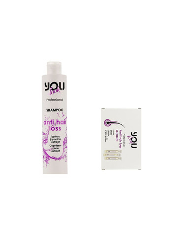 Лосьйон You look Professional Anti Hair Loss Lotion проти випадіння волосся, 10*10 мл Життя сучасної людини більше схоже на карусель, яка кружляє у вихорі подій. Постійні зустрічі, відрядження, незбалансованість раціону, стреси і нервові ситуації негативно впливають на формування гормонального фону, якість нічного відпочинку. Усе це призводить до активізації генетичних недуг, в тому числі і до випадіння волосся. Порідіння пасом — неприємний процес для кожної дівчини, тому першочергове завдання красунь — повернути колишні густоту і сяйво локонів. З таким нелегким завданням під силу впоратися інноваційному лосьйону популярного італійського бренда You look Professional. Він дозовано поміщений у компактні скляні ампули, які зберігають речовину в активному стані. Досконала формула містить високу концентрацію вітамінів групи В, які стимулюють пробудження і прискорення росту фолікулів. У свою чергу, комплекс пантенолу, вітамінів С, Е і РР, які працюють в синергії, пом'якшує кутикули і згладжує їх, реконструює пошкоджені ділянки кортексу і ущільнює пасма. А ментол і камфора заспокоюють, тонізують і охолоджують шкіру голови, знімаючи свербіж і усуваючи лупу. Склад: Aqua (Water), Alcohol Denat., Propylene Glycol, Eucalyptol, Menthol, Camphor, Cupressus Sempervirens Cone Extract, Sophora Japonica Flower Extract, Sodium Ascorbate, Niacinamide, Citric Acid, Panthenol, Polysorbate 20, Calcium Pantothenate, Pyridoxine HCI, Thiamine HCI, Tocopheryl Acetate, Biotin Шампунь You look Professional Anti Hair Loss Shampoo проти випадіння волосся, 1л Проблема випадіння волосся знайома практично кожній людині. Причиною такого неприємного явища може бути безліч факторів: незбалансоване харчування, гормональні збої, стреси і генетика. Після консультації з трихологом, змініть свою звичну косметику, поповнивши колекцію спеціалізованим шампунем професійного італійського бренда You look Professional. Його м'яка формула делікатно промиває шкіру голови, видаляючи бактерії і грибки, лупу, себум і залишки стайлінгових засобів. Екстракт японської софори, який входить до складу речовини, сприяє зменшенню чутливості і зниженню свербіння та дискомфорту. Пілінг-часточки прискорюють мікроциркуляцію, забезпечуючи приплив вітамінів і мікроелементів, необхідних для росту і розвитку фолікулів. Витяжка з цілющих ягід кипариса інтенсивно живить і зволожує кожну клітинку, відновлює пошкоджені ділянки кортексу і гарантує блиск, шовковистість і слухняність ваших локонів з поступовим збільшенням їхньої густоти. Спосіб застосування: нанести на вологе волосся, витримати 2 хвилини, потім обполоснути великою кількістю води.
