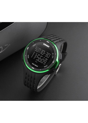 Цифровий кварцовий чоловічий наручний годинник з будильником і секундоміром чорного та зеленого кольору. Тип: Кварцовий, Цифровий Стиль: Унісекс Матеріал: Пластиковий корпус Колір: Чорний із зеленим Водонепроникність: WR Тип відображення часу: 12/24 години Функції: Будильник, підсвічування, секундомір Харчування: Батарейка Особливості та переваги: годинник оснащений функцією підсвічування для зручності, що робить їх ідеальними для активного способу життя. Додаткова інформація: годинник підходить як для повсякденного носіння, так і для спортивних заходів, завдяки своєму універсальному дизайну та міцному пластиковому корпусу. Технічні вимоги: розмір та вага годинника оптимально збалансовані для комфортного носіння.