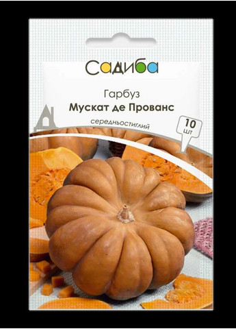 Гарбуз Мускат де Прованс – ваш ідеальний вибір для гарного врожаю і різноманітних кулінарних можливостей! Середньостиглий сорт (106-118 днів) з великими, округло-приплюснутими плодами вагою 8-10 кг. У технічній стиглості має сіро-зелене забарвлення, яке з часом перетворюється на яскраво-помаранчеве з мигдальним відтінком. М’якуш цього гарбуза – справжня насолода: солодкий, щільний, багатий на цукор і сухі речовини (понад 10%). Це універсальний сорт, що підходить як для свіжого споживання, так і для приготування соків, пюре, каш, концентратів. Його висока лежкість і стійкість до хвороб роблять його фаворитом серед городників. Замовляйте насіння ТМ Садиба в нашому Інтернет-магазині прямо зараз - і вже зовсім скоро насолоджуйтеся неймовірним та яскравим цвітінням! А ми швидко обробимо замовлення та оперативно надішлемо його до будь-якого міста України. Переваги покупки насіння у нашому інтернет-магазині: Широкий асортимент насіння овочів, зелені, квітів і пряних трав від перевірених виробників; Усе насіння проходить контроль схожості, чистоти та відповідності сортовим ознакам; Регулярне оновлення складу, тому ви отримуєте тільки свіже, життєздатне насіння; Без ГМО; Зручна доставка по всій Україні; Доступні ціни та вигідні акції - купуйте якісне насіння без переплат.