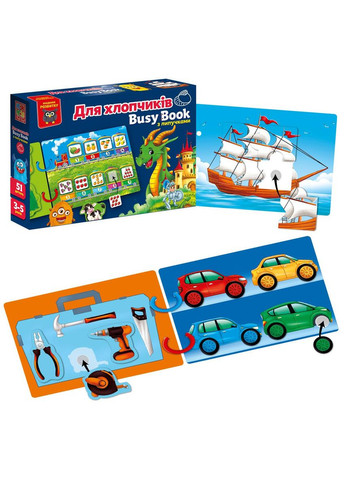Основні характеристики: Тип гри: Розвиваюча гра з липучками Вік: від 3 років Склад: книжка з липучками Мета гри: Розвиток логіки та моторики Опис товару: Гра "Бізи бук. Для хлопчиків" допомагає розвинути увагу, логічне мислення та моторику. Яскрава книжка з липучками дозволяє створювати цікаві образи, що стимулює креативність і фантазію дитини. Чудово підходить для дошкільнят та молодших школярів.