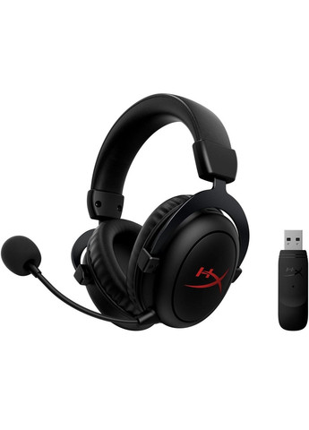 Ігрові навушники HyperX Cloud II Core Wireless Black Гарнітура HyperX Cloud II Wireless — бездротова геймерська гарнітура, що підтримує бездротове під'єднання до джерела аудіопотоку за допомогою USB-радіомодуля, що працює в діапазоні 2.4 ГГц і віртуальне просторове звучання DTS Headphone: X Spatial Audio. Навушники забезпечують чітке позиціонування джерел звуку, роблячи ігровий процес захопливішим. Гарнітура обладнана фірмовою піною з пам'яттю форми HyperX і м'яким шкірозамінником, що надає комфорту тривалих ігрових сесіях. Мікрофон із функцією шумозаглушення й індикацією вимкнення не дає змогу навколишнім звукам заважати голосовим переговорам і, коли він не використовується, його можна зняти. Гарнітури HyperX Cloud, що славляться своїм легендарним звуком, комфортом і довговічністю оптимізовані під ігровий стиль. Гарнітура зберігає з'єднання на відстані до 20 метрів, від одного заряджання можна працювати до 80 годин, користуючись інтуїтивними органами керування на гарнітурі. Специфікації геймерської гарнітури HyperX Cloud II Core Wireless Наушники Драйвери: Динамічні (53 мм) з неодимовими магнітами Форм-фактор Охоплювальні, закритого типу Діапазон частот: 15 Гц - 21 кГц Імпеданс: 62 Ом Чутливість: 103 дБ SPL/мВт за 1 кГц Коефіцієнт нелінійних спотворень: <2% Матеріал наголів'я: Алюміній Амбушури: Піна з ефектом пам'яті форми та шкірзам найвищої якості Фізичні характеристики Маса: 322 г; Маса з мікрофоном: 335 г Довжина та тип кабелю: кабель USB для заряджання 0.5 м Акумулятор Батарея: Літій-полімерна Автономність: до 80 годин Час заряджання: 3 години Під'єднання та функції Під'єднання: Бездротове USB Аудіоформат USB: Стерео Специфікація USB: USB 2.0 Частота дискретизації: 48 кГц Бітова глибина: 24 біти Віртуальне просторове звучання: DTS Headphone:X Регулювання звуку Вбудоване Мікрофон Тип: Електричний конденсаторний мікрофон Діаграма спрямованості: Двоспрямована, із шумозаглушенням Діапазон частот: 50 Гц - 7.2 кГц Чутливість: -15 дБВ (0 дБ = 1 В/Па за 1 кГц) Артикул 6Y2G8AA
