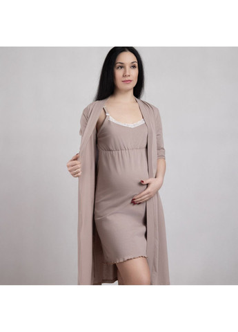 Халат на запах з коротким рукавом ,має дві кишені, і поясок. Брителі нічної на застібках для годування Регульовані бретелі Полотно кулір (100% бавовна). Набір прикрашений мереживом. Комплект чудово підійде для вагітних і мам, що годують. Догляд: 30-40 градусів при пранні.